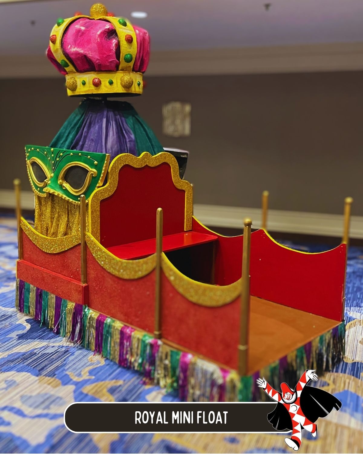 Studio 3's mini floats are designed to impart the merriment and joy associated with New Orleans-style revelry, making them ideal for small walking parades or indoor celebrations. Choose from our selection of pre-fabricated mini floats, which include this Royal Mini Float, or opt for a bespoke, tailor-made option instead.